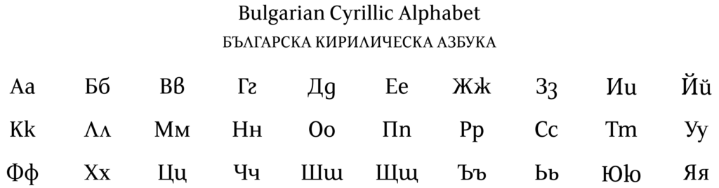 I Bulgarien er det det kyrilliske alfabet man bruger og da landet blev medlem af Den Europæiske Union i 2007, blev det kyrilliske alfabet officielt anerkendt som EU’s tredje officielle alfabet, efter det latinske og det græske.