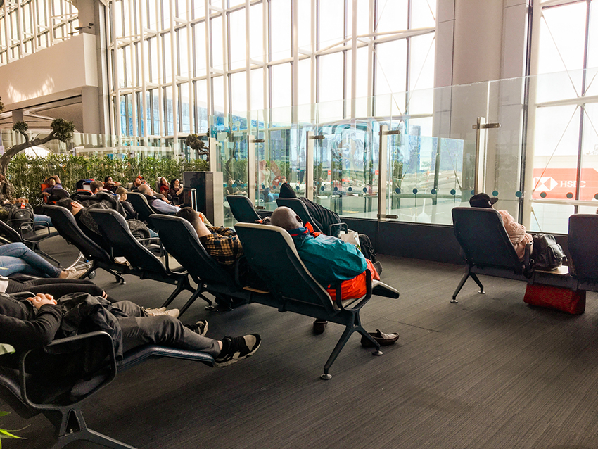 Flere steder i lufthavnen fandt jeg gratis liggestole, som man kunne tage en slapper eller en lur i.