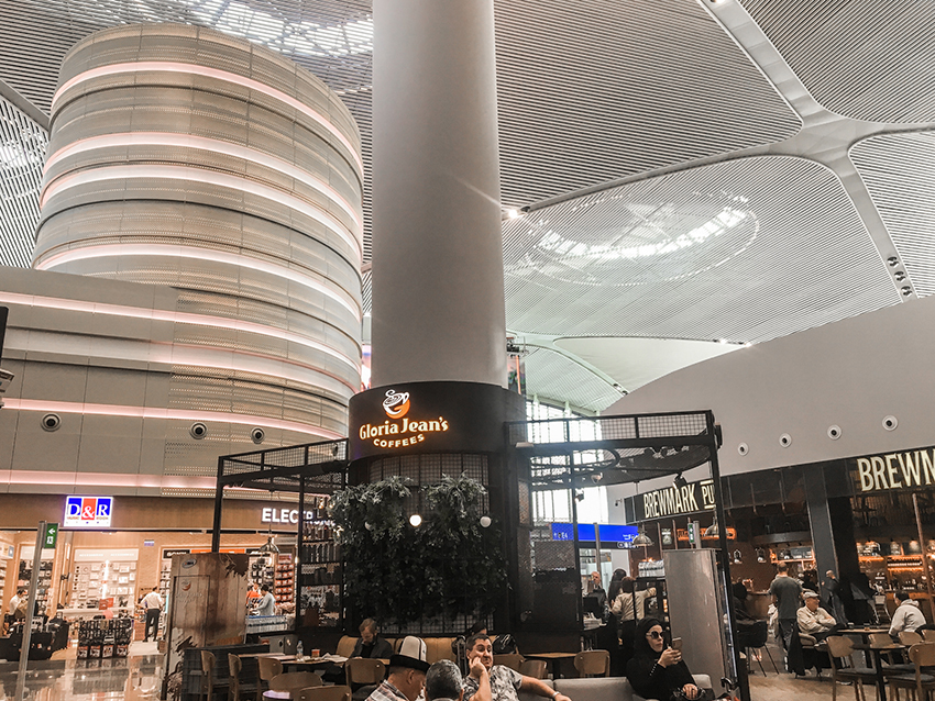 Jeg blev positivt overrasket over, hvor fede lounge områderne var i den nye Istanbul lufthavn. Normalt er der alt for få siddeområder sammenlignet med, hvor mange rejsende der er, og når man rejser flere sammen, så er det næsten umuligt at sidde hyggeligt sammen i lufthavnen.