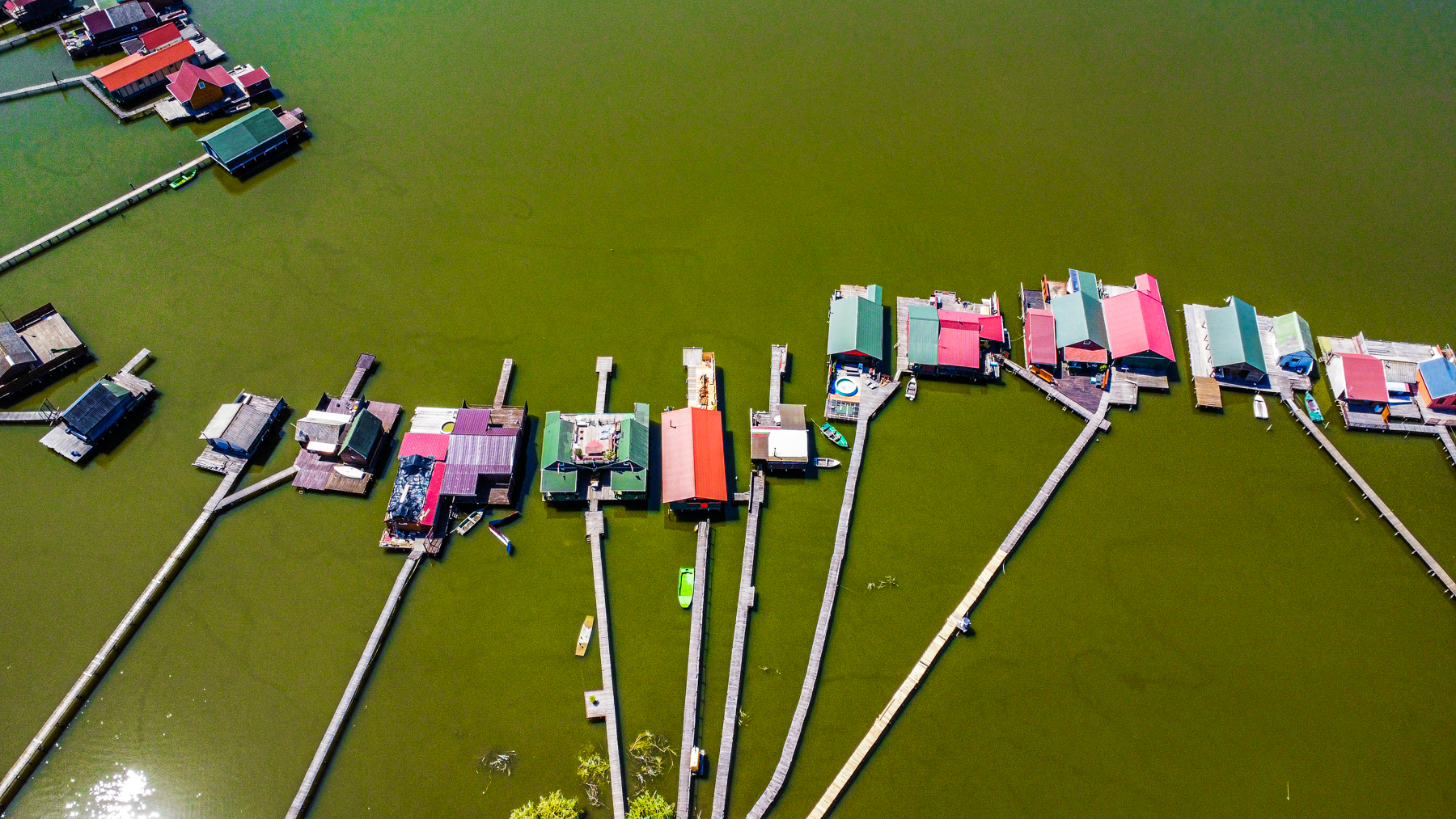 Det mest bemærkelsesværdige ved Bokodi víztározó er de træhytter på pæle, der står langs vandets overflade, forbundet af smalle gangbroer. Dette giver stedet et nærmest eventyrligt præg, som minder megst on noget man ser i Asien og det omtales ofte som en “flydende landsby” – selvom husene faktisk ikke flyder, men står på pæle i vandet.