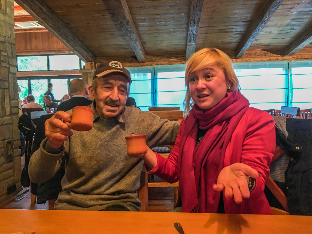 Foran hans hus tager Theodor i mod mig, Jelena og min gruppe og inden vi får set os om, har vi et shotglas blommebrændevin i hånden.