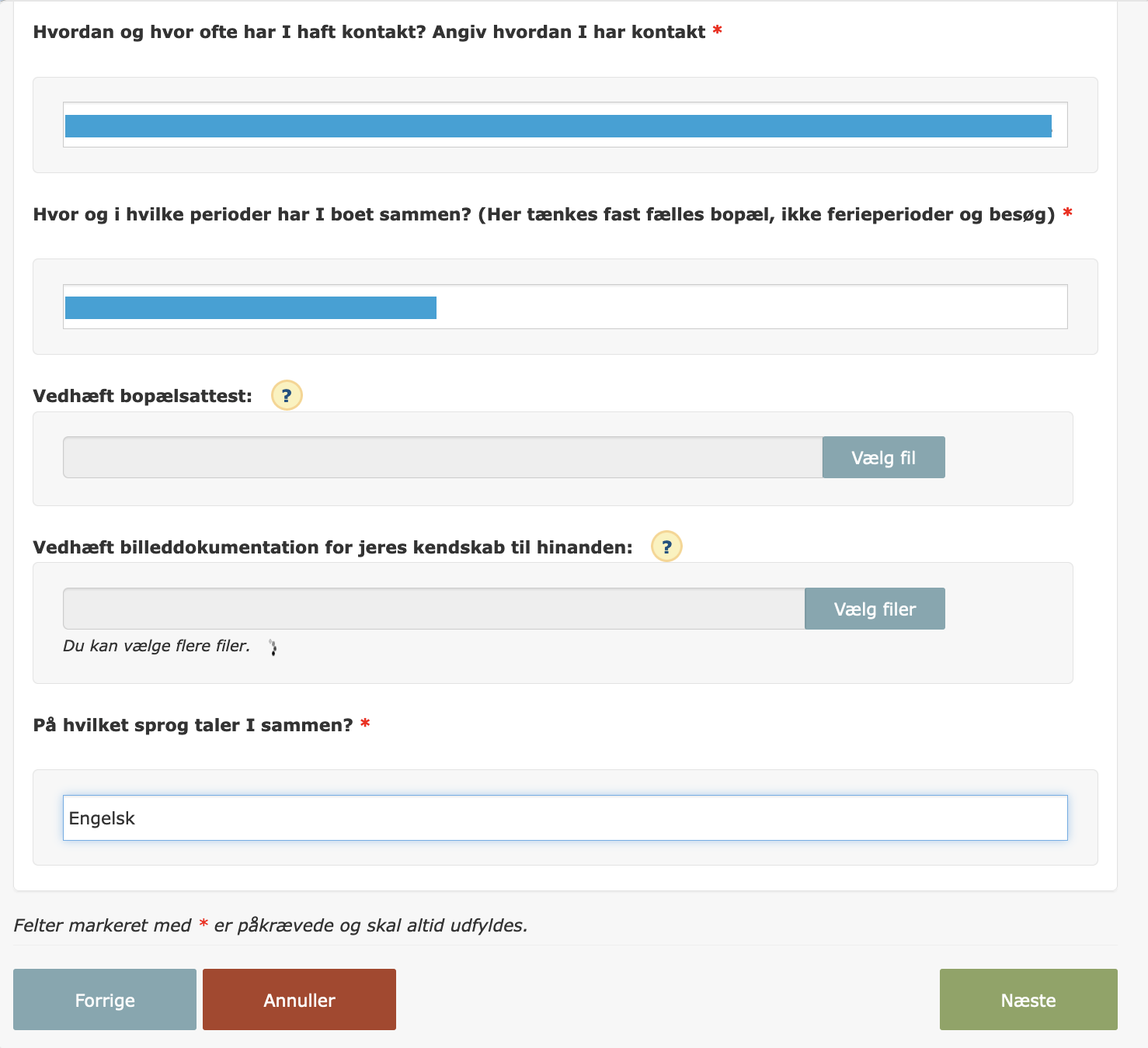 F.eks hvad sprog I taler sammen, hvornår i første gang mødte hinanden med dato, billeder af jer sammen dateret med året det er fra (jeg tog skærmbilleder af mine billeder, så man kunne se datoerne på billederne, da jeg jo har kendt Taner i 10 år, men vi var fra hinanden i 4 af dem), billeder af jeres beskeder til hinanden (fra begge partneres telefon og gerne fra flere platforme så whatsapp, facebook, instagram osv.), emails, adresser, pasoplysninger på begge partnere og billeder af ALLE siderne inklusiv forside og bagside på begge pas.