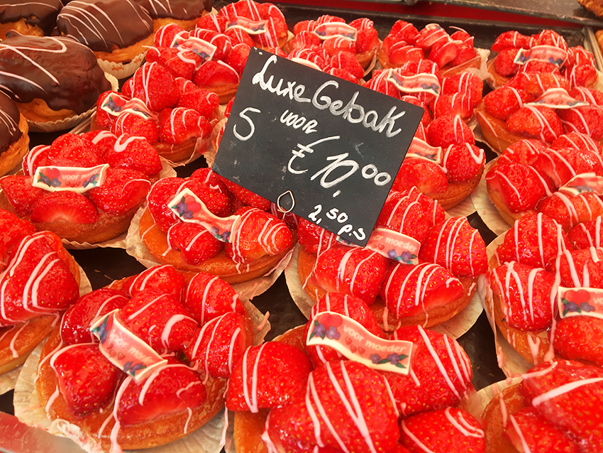 På mange markeder minder markedet om dem jeg kender fra Tyrkiet, men faktisk havde Eindhoven mere at byde på. Ud over det sædvanlige salg af frugt, grønt, ost og tøj havde Eindhovens lørdags marked også fisk, kød, bagere og lokale snacks. Særligt bagerens kager var utrolig fristende, men det er kager med jordbær jo altid.