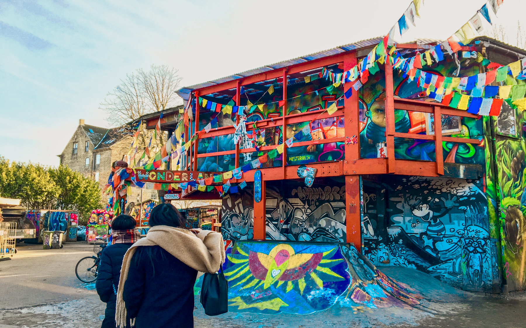 Wonderland: Byens farverige skaterpark, tæt ved indgangen til Christiania. Skaterparken er farverig og velbesøgt om sommeren.