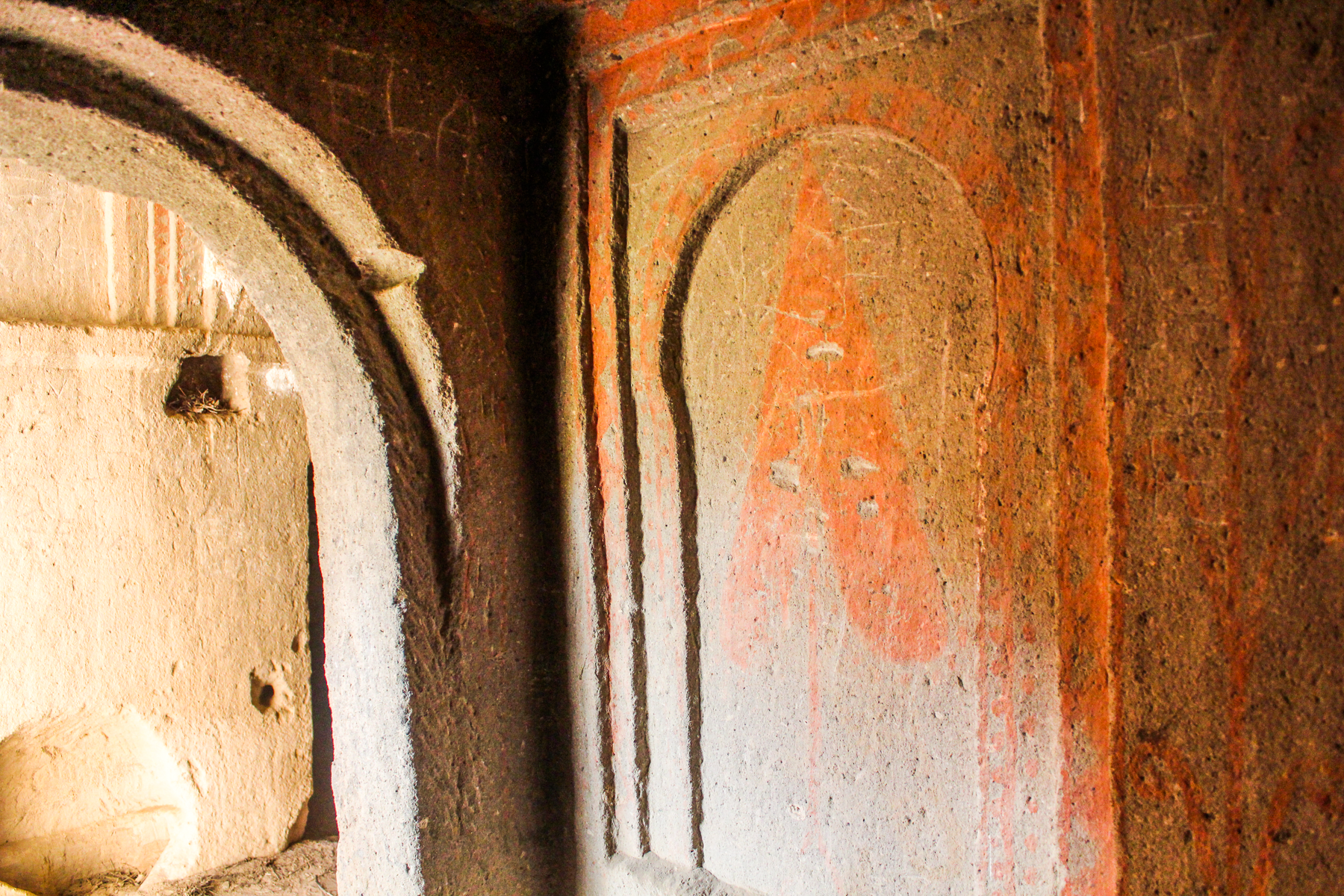 Kirken har et uafhængigt korsformet gravkammer i nordøst, dækket af en kuppel hugget ind i det flade loft, med to grave på nord- og sydsiden.