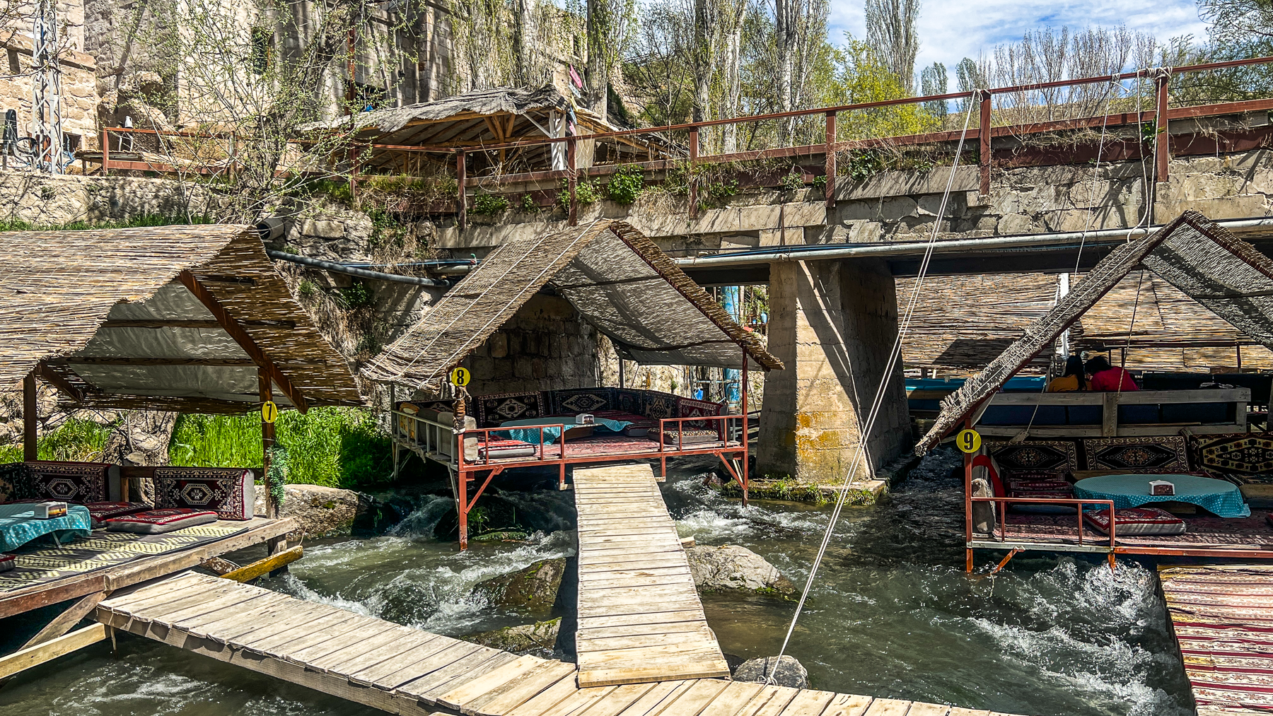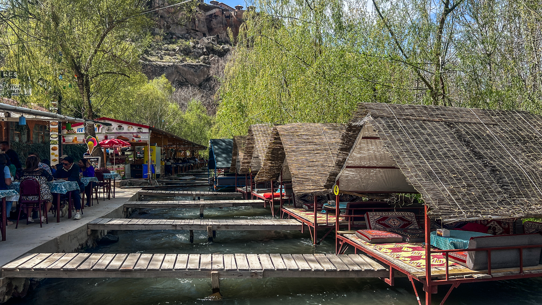 Dette punkt er ca. halvvejs igennem dalen og ved indgangen til dalen er der flere små bænke, broer over floden og f.eks skilte med “Ihlara” som er meget populære at tage billeder med.