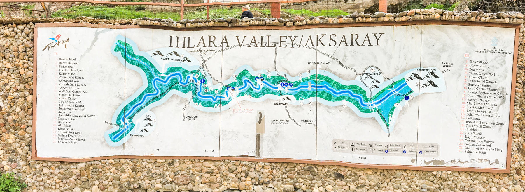 I Kappadokien er det almindeligt at turselskaberne har inddelt de forskellige turer i farver og turene som går til Ihlara dalen har farven “Grøn”.