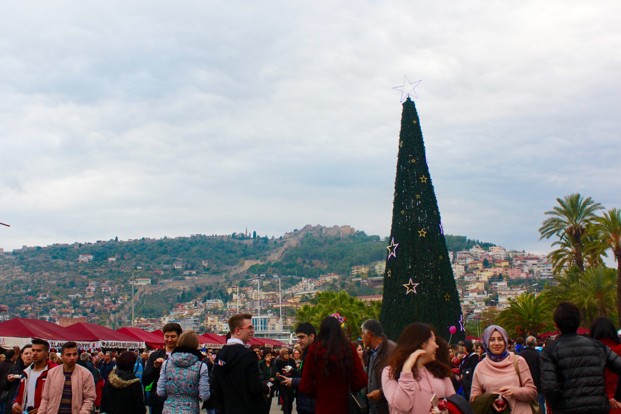 De holder ikke jul fordi de er muslimer, men de har blandt julen ind i nytåret, så de kender godt julemanden, julepynt og dele af hyggen. I december er det selvsagt at der ikke er særligt mange turister i Alanya, og derfor er størstedelen af de fremmødte tyrkere.