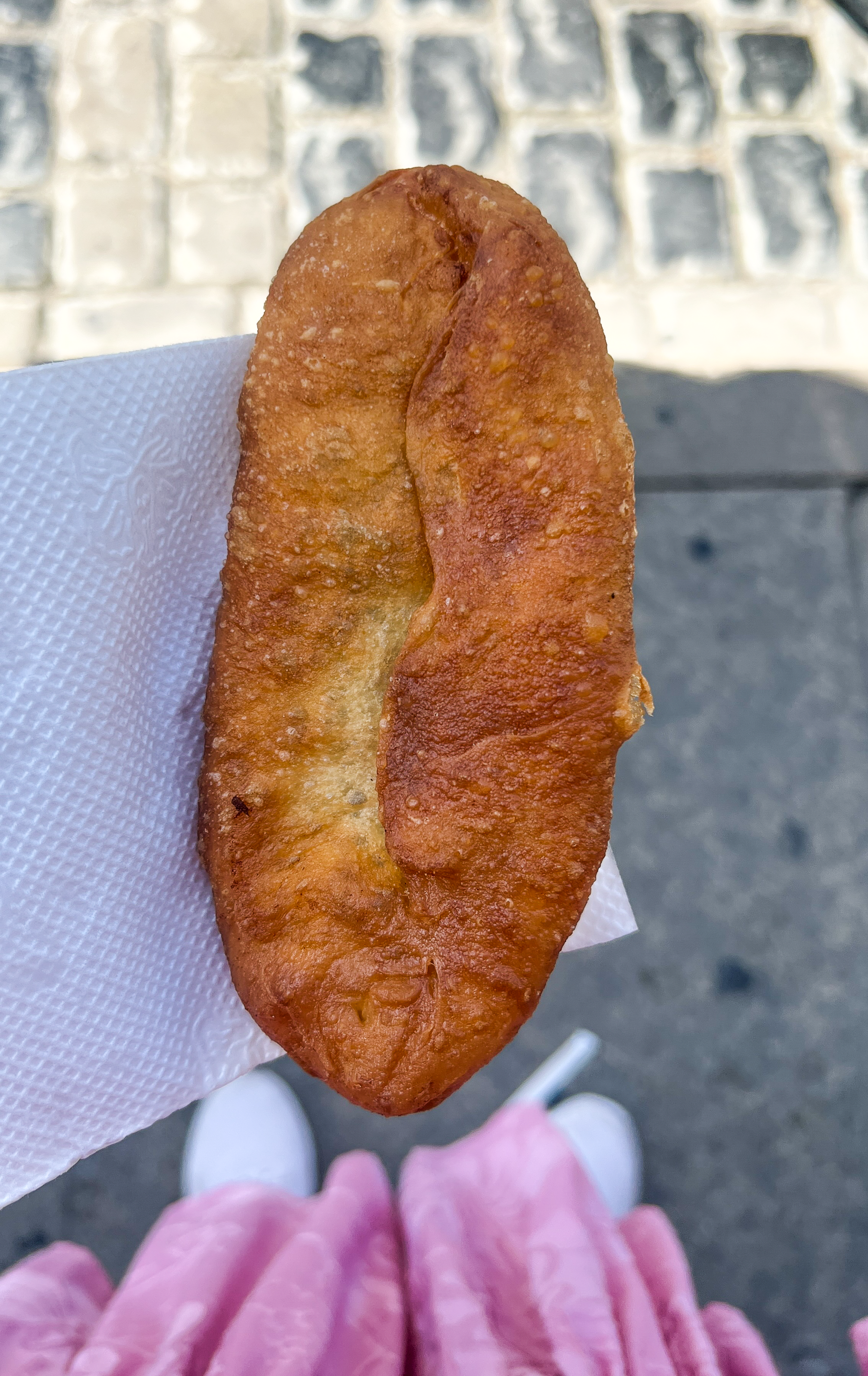 De små gadebagerier sælger Perashki, også kendt som pirozhki, med forskellige former for fyld, som f.eks ost, kartofler og kød.