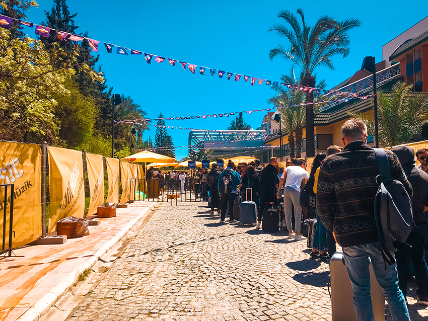 Jeg stod i kø til at komme ind. Jeg faldt i snak med 3 andre festivaldeltagere, som ironisk nok også kom fra Alanya. Vi får armbånd på og tjekker ind på hotellet. Også følelses det som om, der gik 3 timer, så var vi på vej hjem igen.