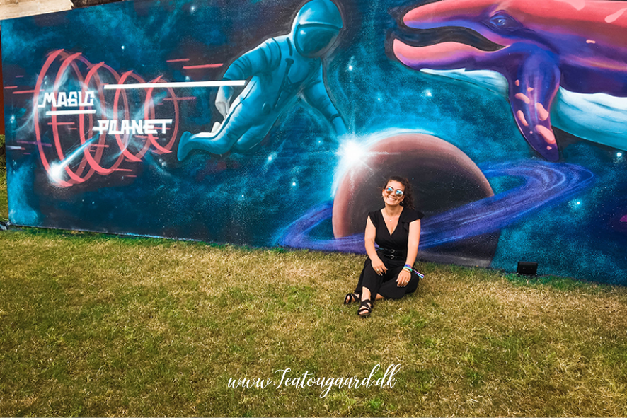 Jeg blev glædeligt forbløffet over, hvor gennemført festivallen var! Scenerne var store og hver scene var designet med forskellige unikke designs. Stranden var opbygget i ægte boheme stil med flag, bål og hængekøjer. Overalt i området var der sjove skilte og aliens som lå og sov i græsset.