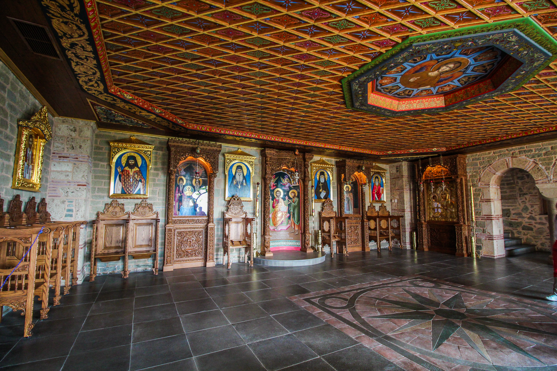 Den nuværende hovedkirke blev opført i det 19. århundrede og er stadig i brug i dag. Der arbejdes løbende på at færdiggøre freskoerne inde i kirkerummet. En af klosterets mest hellige skatte er kraniet af Sankt Charalambos, som blev skænket af Valakiets (en historisk region i det sydlige Rumænien) hersker Vladislav. Relikviet opbevares i dag i kirken og er et vigtigt pilgrimssted.
