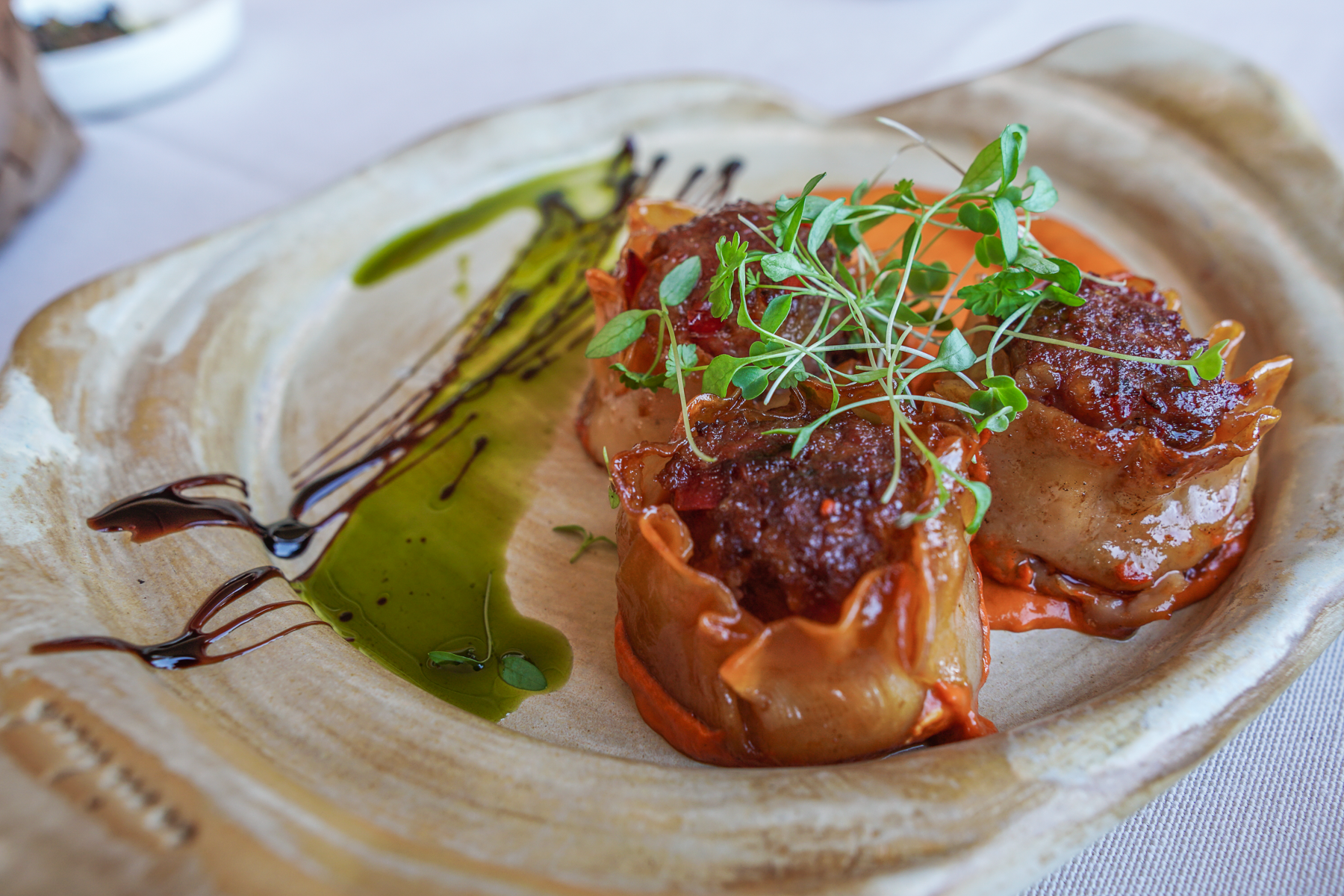 Hele området er lavet, så det giver følelsen af at sidde i et museum mens man nyder de mest utrolige retter. Jeg har fået burger med guld på, en af de saftigste bøffer i mit liv og et fortryllende ostebord, mens solen gik ned.
