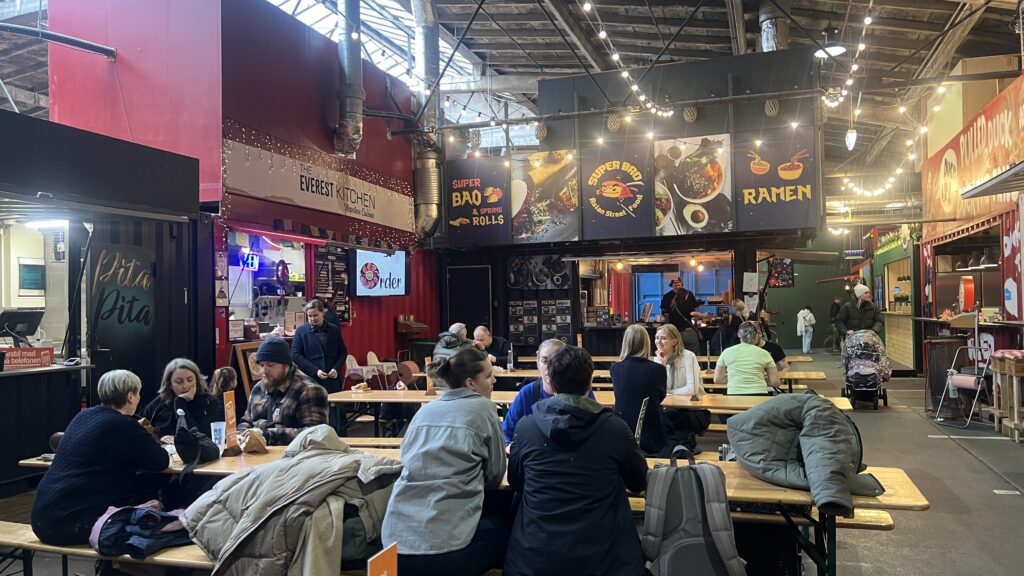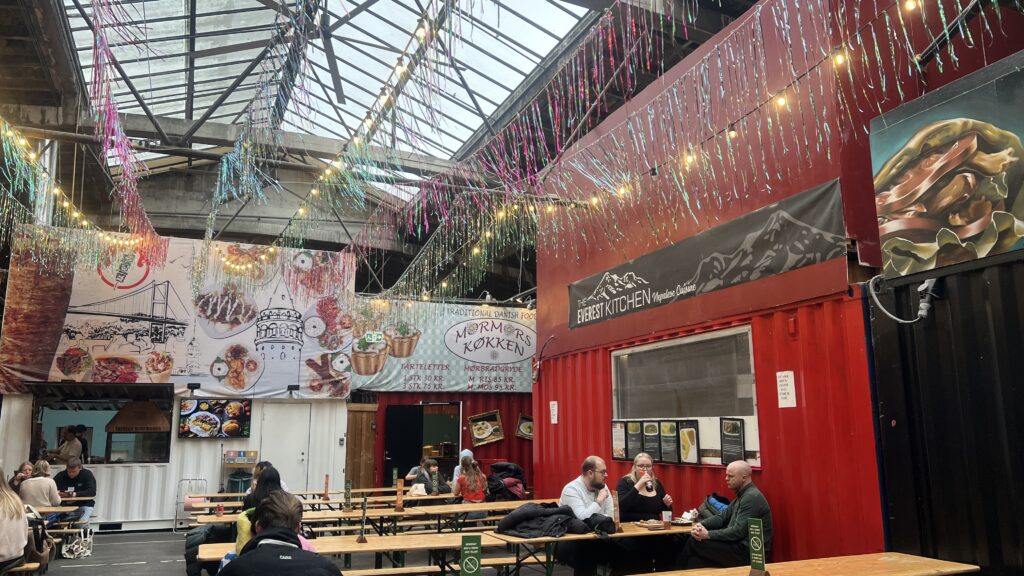 En anden ting der kan virke forvirrende første gang man besøger Aarhus Street Food er, hvor man må sætte sig. Men det er faktisk meget simpelt – du kan sætte dig der, hvor der er plads.