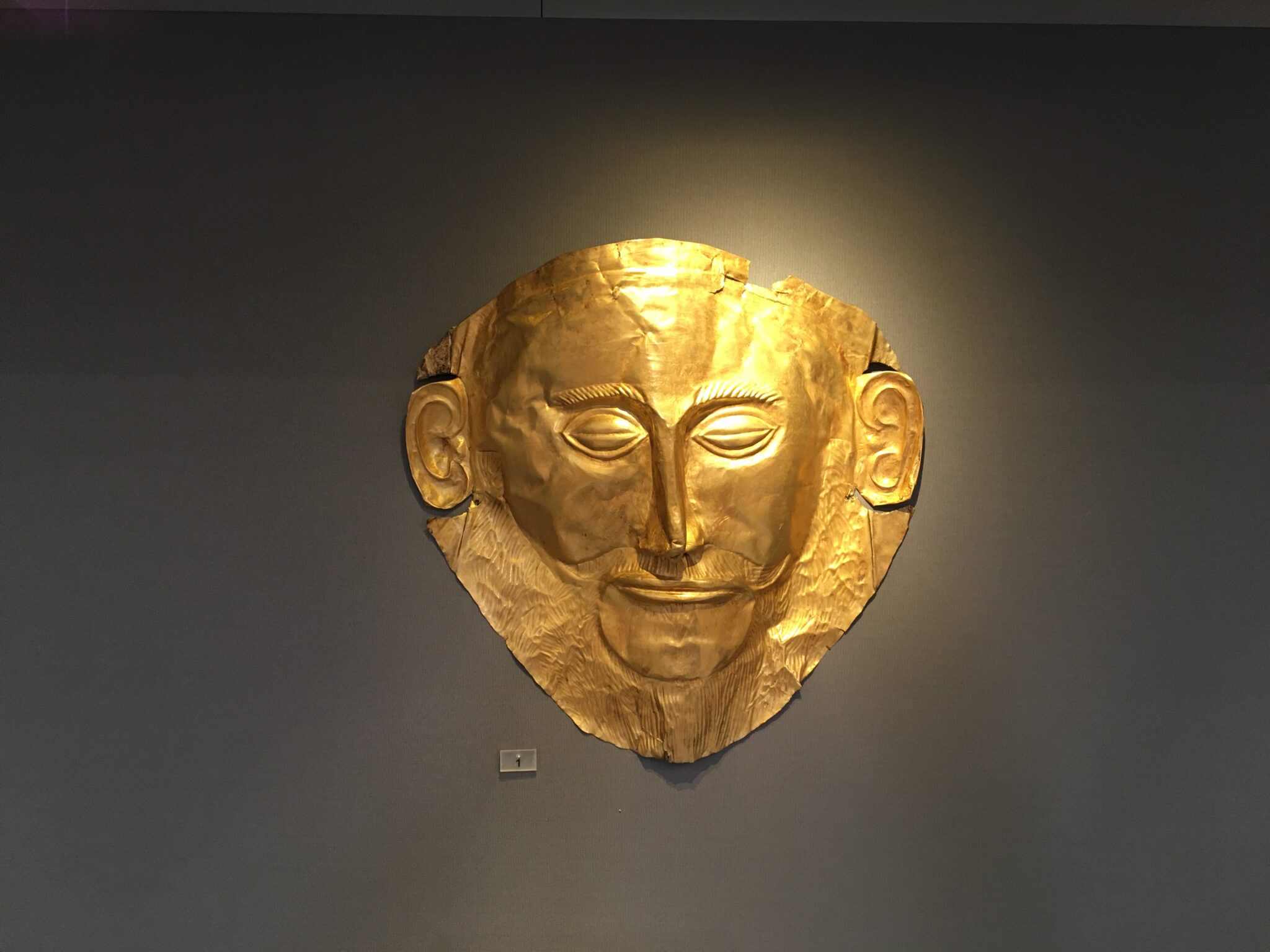 Den originale Agamemnons dødsmaske (som ikke er af Agamemnon) er udstillet på der arkæologiske museum i Athen.