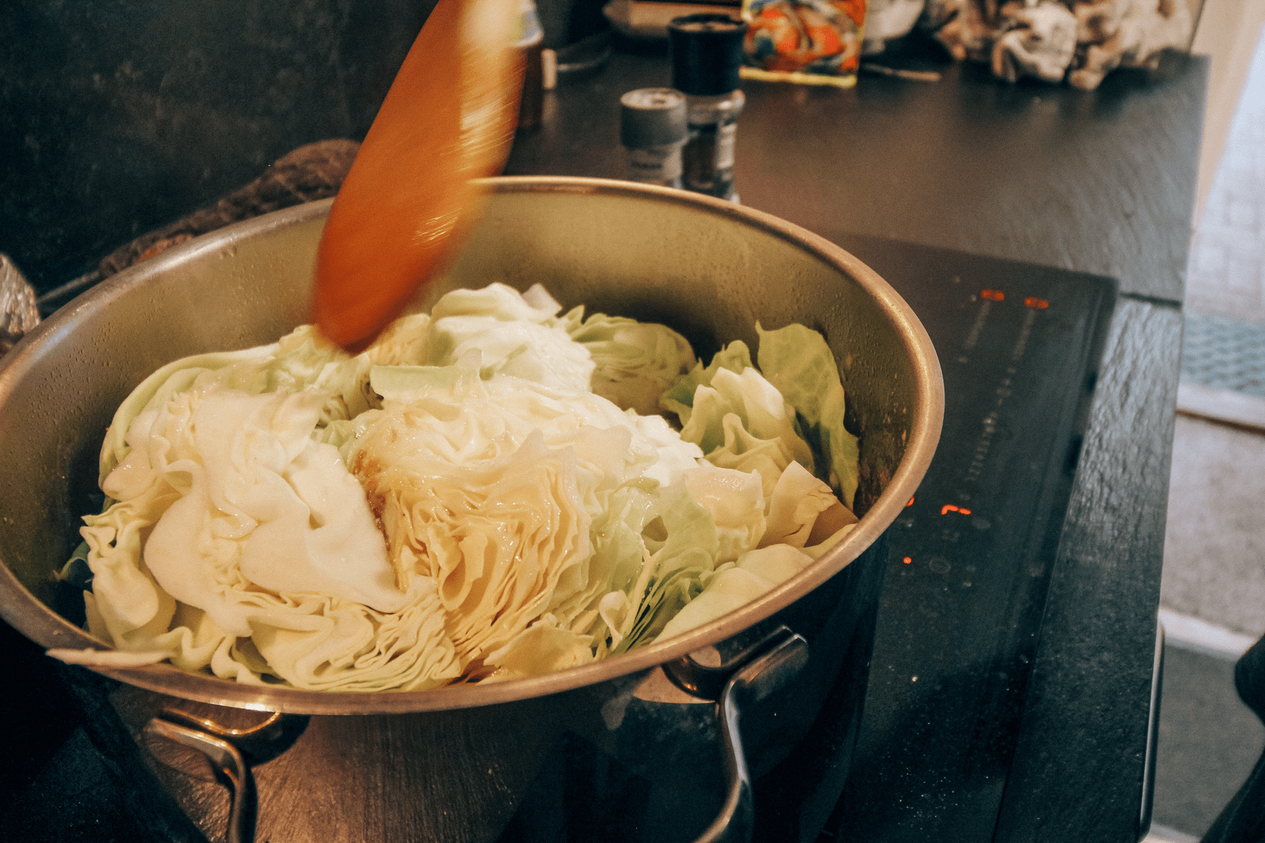 Hak dit spidskål groft og tilsæt det til retten.