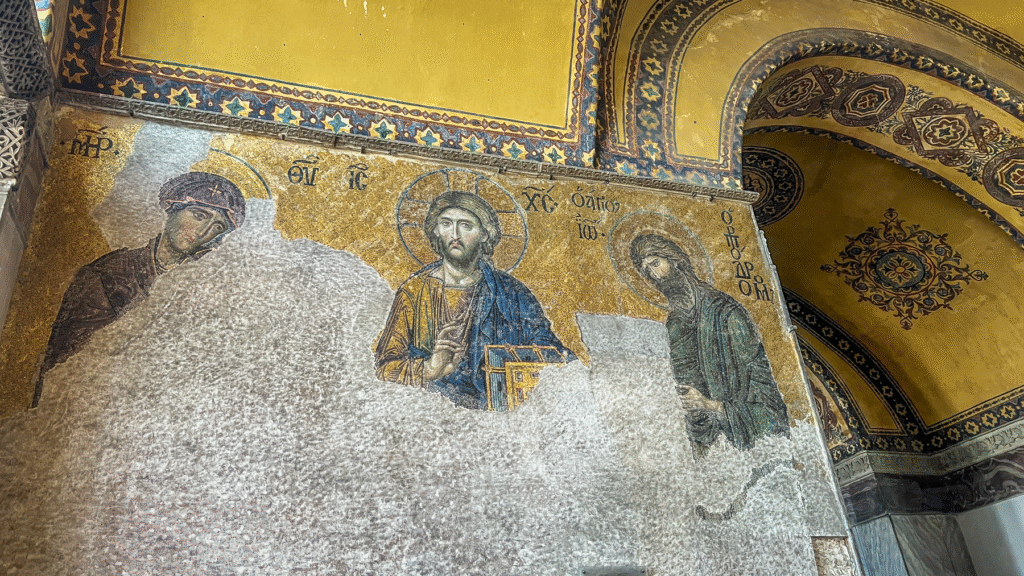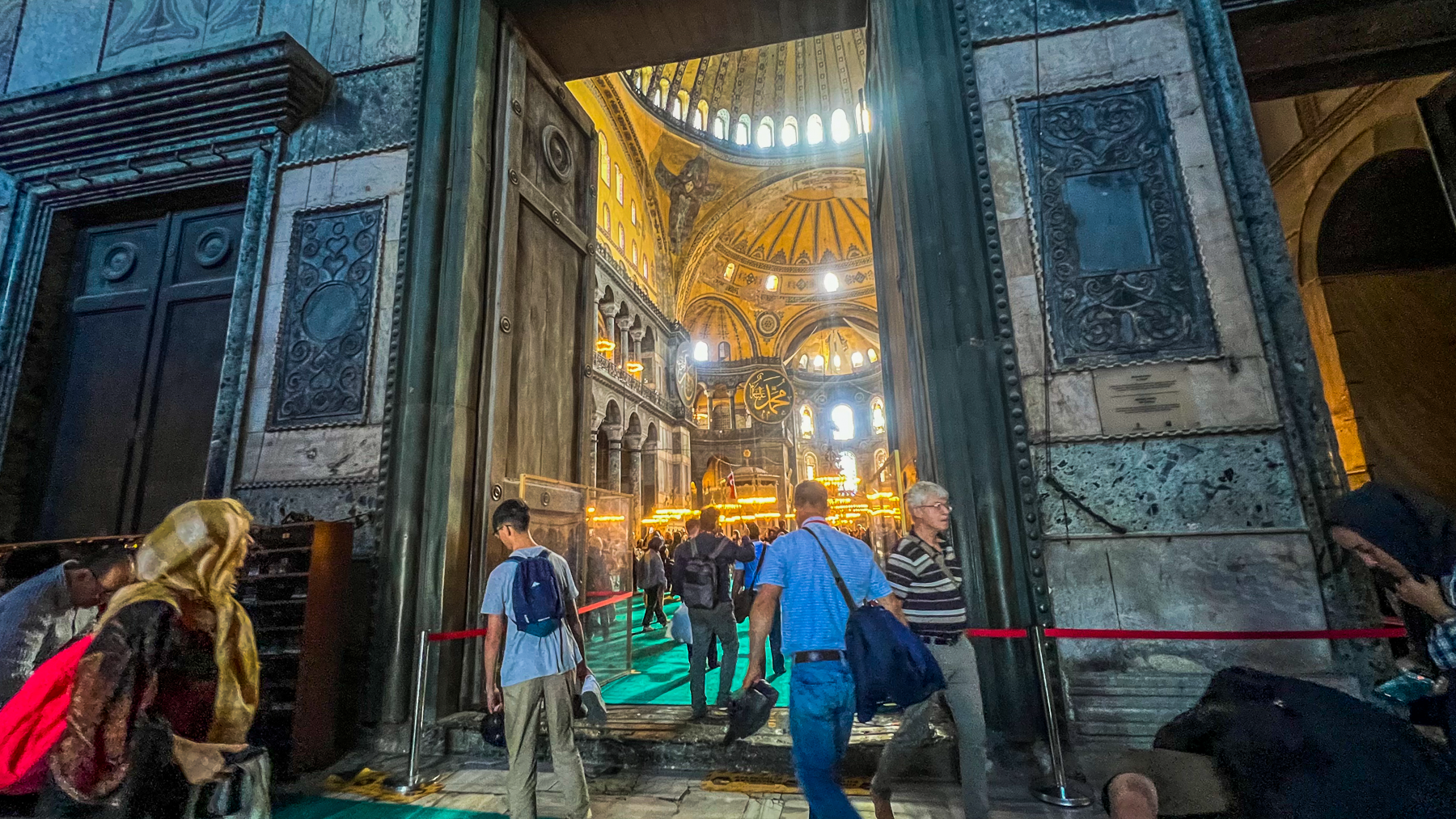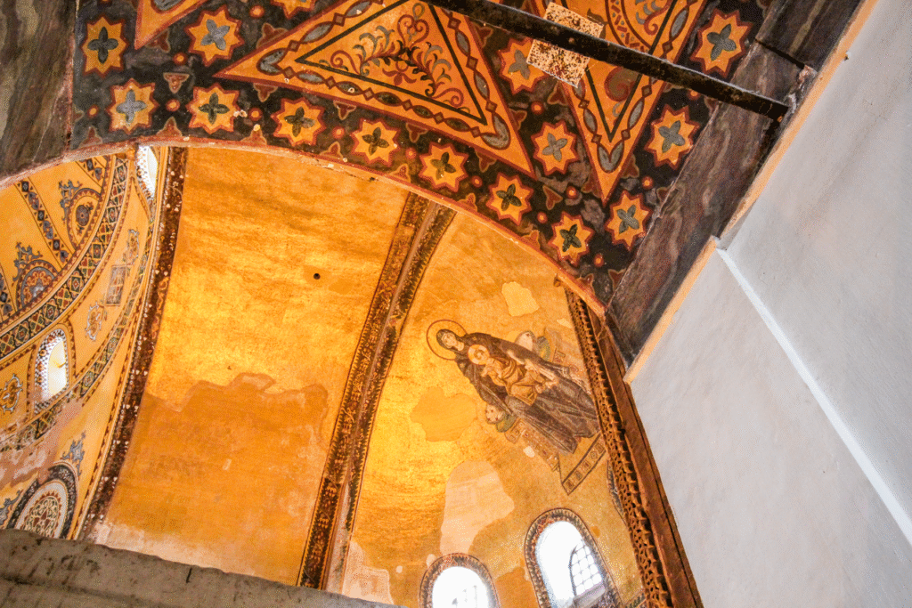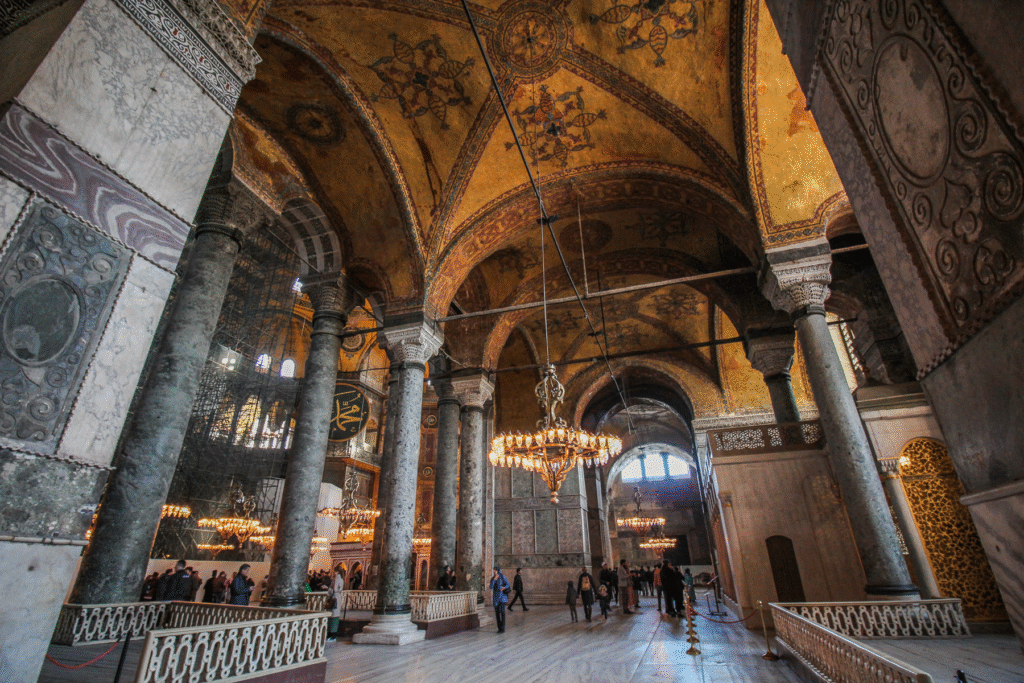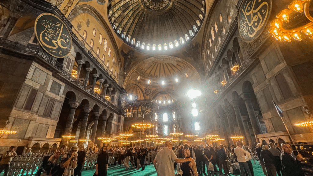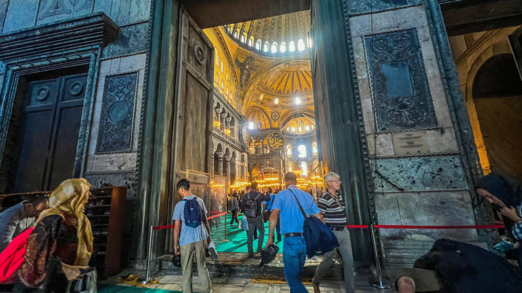 - Delvis moské delvis museum: I januar 2024 blev Hagia Sofia delt op, så galleriet blev museum med betalt entré og egen indgang og nederste etage moské for bedene muslimer.