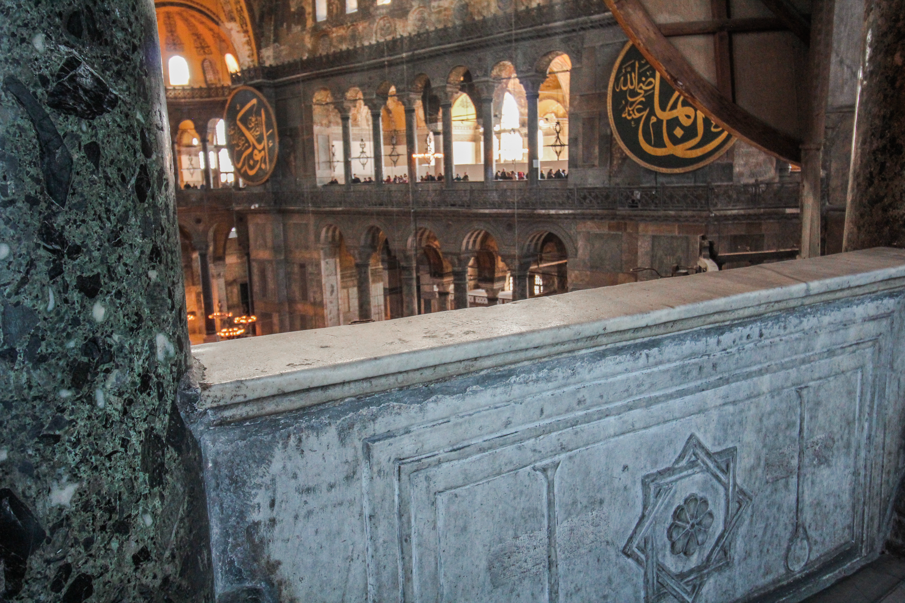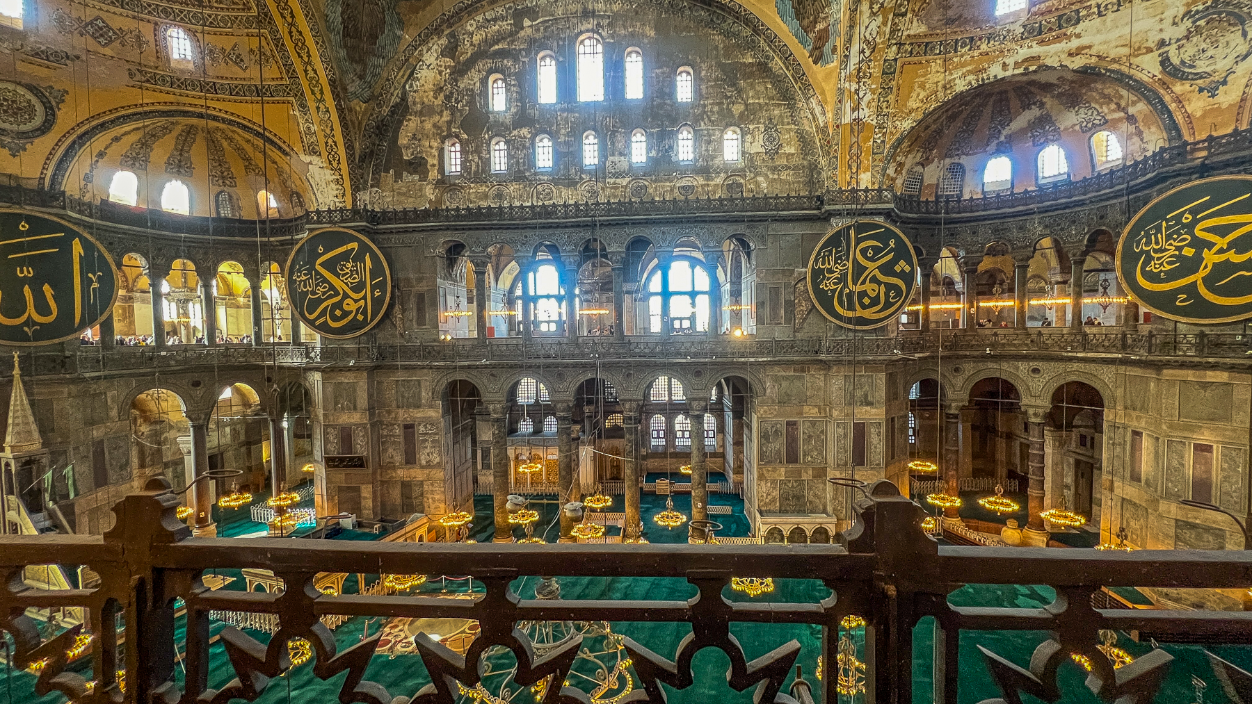Det gode ved at Hagia Sofia moskéen er åbnet som museum er, at man nu kan komme op i galleriet, som var lukket fra 2020, da det var bedeafdeling for kvinder. I galleriet kan man se flere af de historiske mosaikker samt vikingegraffitien tæt på (mere om det længere nede).