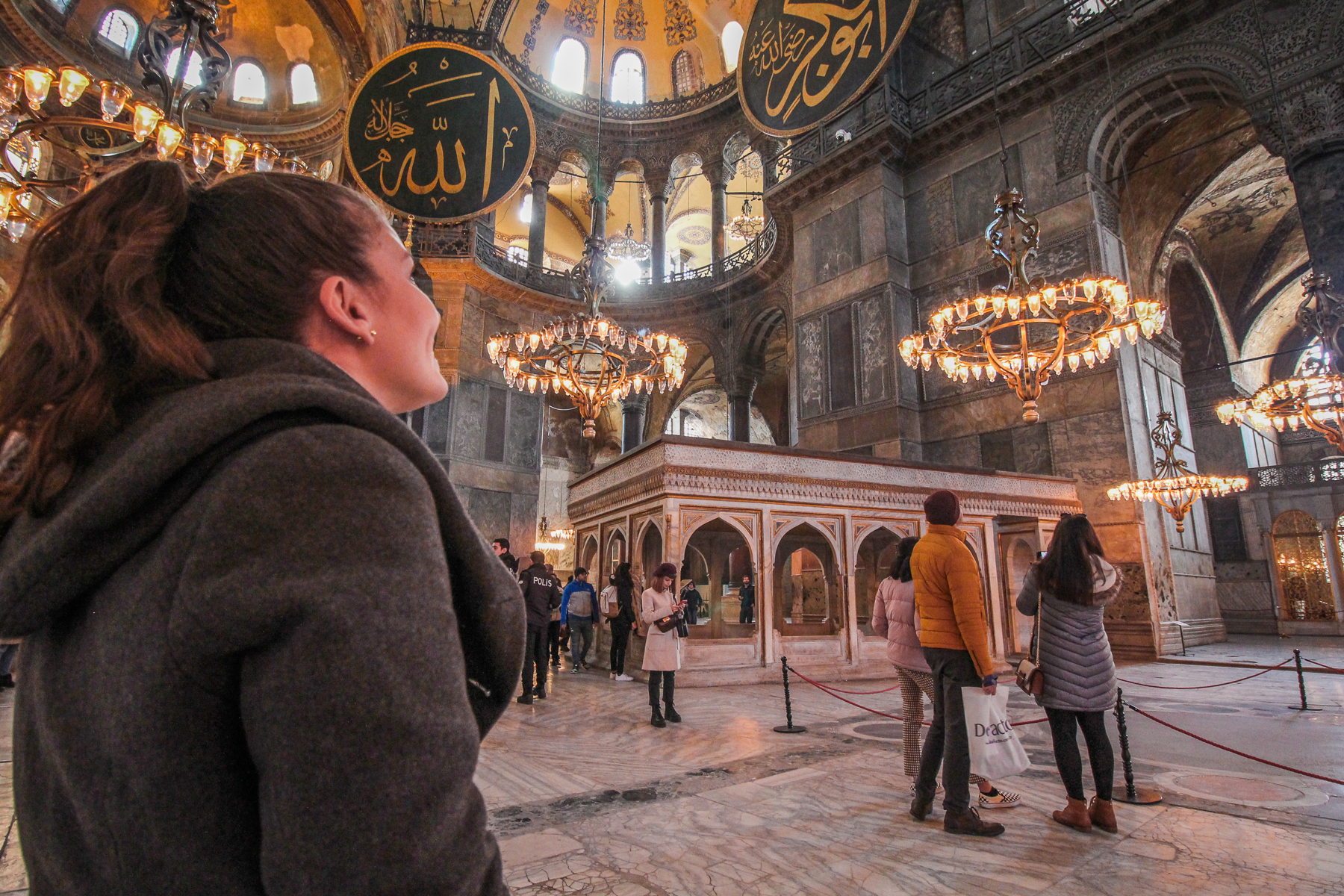 Hvis du er tyrker (med id kort) eller troende muslim, så kan du besøge den nederste etage af Hagia Sofia. Og lad nu hver at bruge din tid på at snyde vagten til at tro du er muslim, hvis du ikke er.