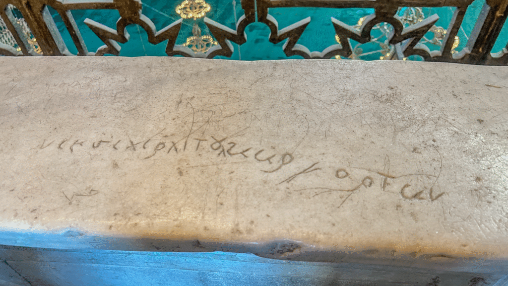 For mig er hovedattraktionen i Hagia Sofia grafitten fra vikingerne Halvdan og Are, der har ridset deres navne ind i bygningen med rune skrift. Nogle kilder mener at Halvdan var dansker, nogle kilder siger endda vikingekonge.