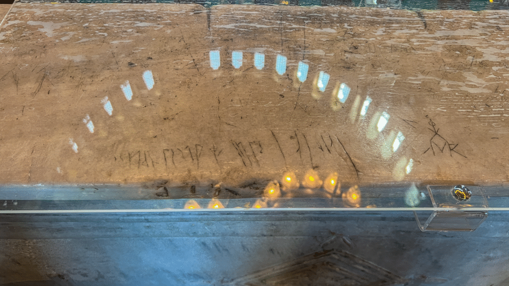 Her mere end 1000 år senere er deres navne der endnu, som et evigt minde, om de har været der før Danmark blev kristen. Det er nu en seværdighed indeni en seværdighed, fordi 2 mænd uden autoritet, valgte at forevige sig selv.