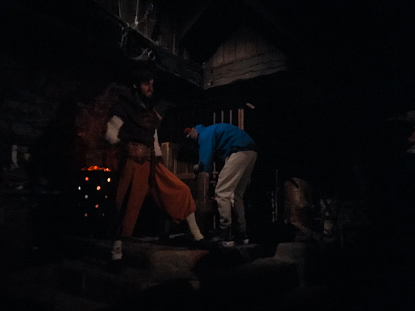 Lyset er som sagt dæmpet og gang på gang sprang en ny karakter ud fra mørket. Jeg griner altid der, hvor andre skriger, så jeg har sikkert været røv belastende for de andre deltagere som sad med fingrene i munden af skræk.