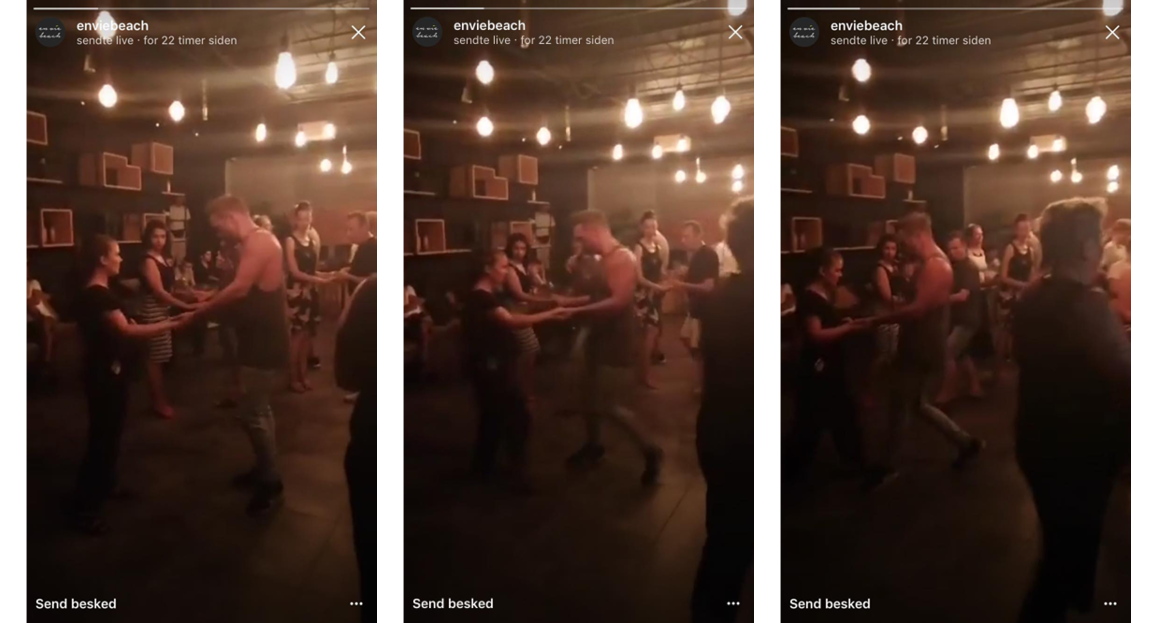 Mens jeg sender live på instagram, går jeg om på siden af Silas, for at filme danserne på gulvet. Imens er Silas ved at få danserne til at danne par, så de kan prøve ChaCha to og to. Til manglede han selv en partner, og i hurtigt drej vender han sig mod mig og siger “Tea, kom og dans med mig”.